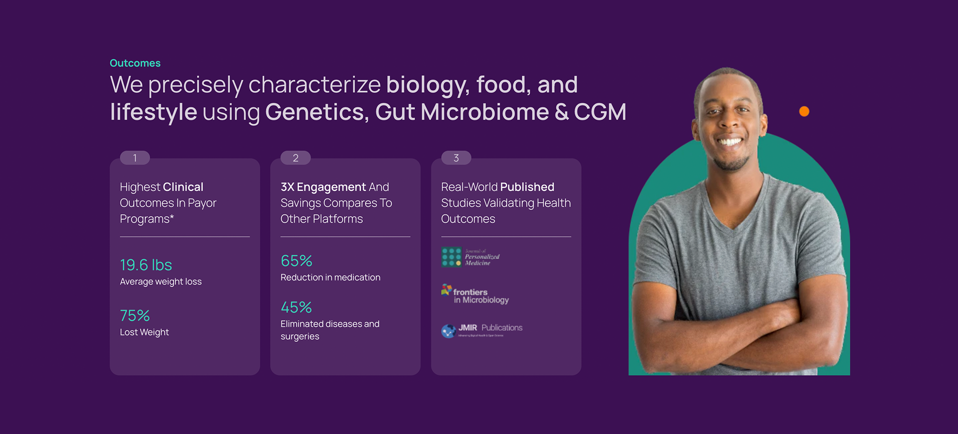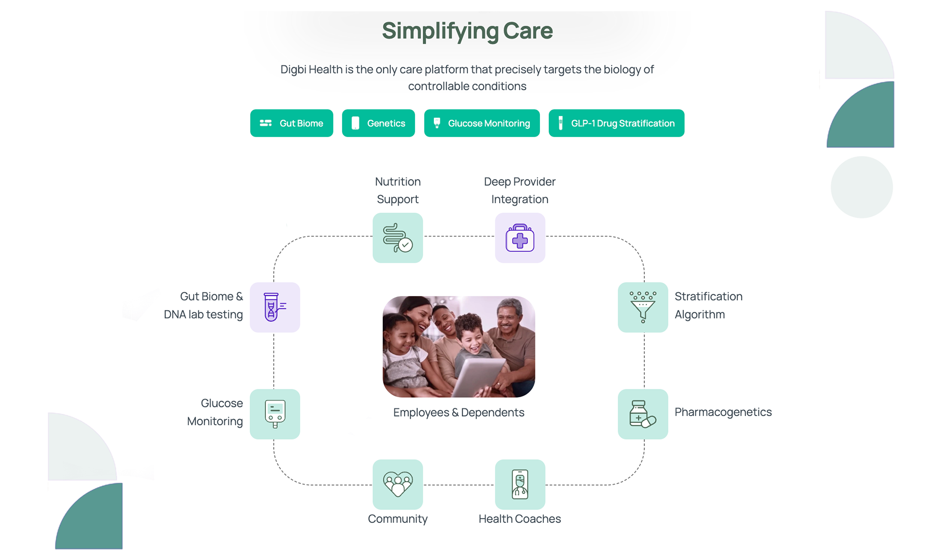 We collaborated with Digbi Health, a groundbreaking virtual care platform. Digbi Health is the pioneer in leveraging AI, clinical insights, genetics, gut microbiome data, and behavioral signals to address the root causes of polychronic mental and physical illnesses associated with weight and gut issues.
